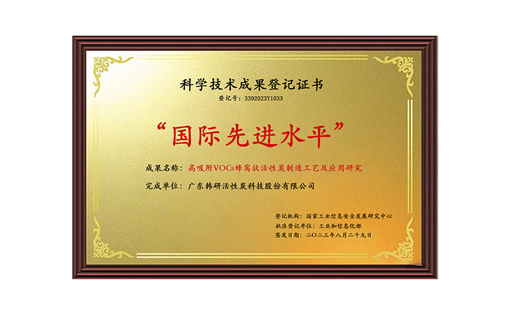 高吸附VOCs蜂窩狀活性炭制造技術(shù)獲國家工信部權(quán)威評定,達國際先進水平。