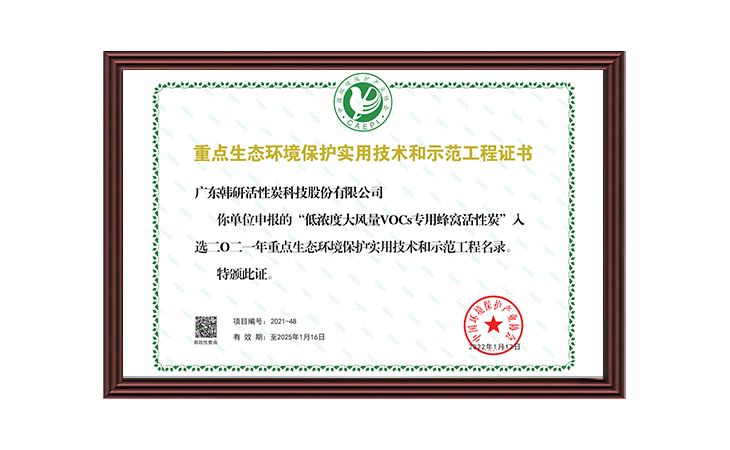高吸附VOCs蜂窩狀活性炭制造技術(shù)獲國家工信部權(quán)威評定,達國際先進水平。